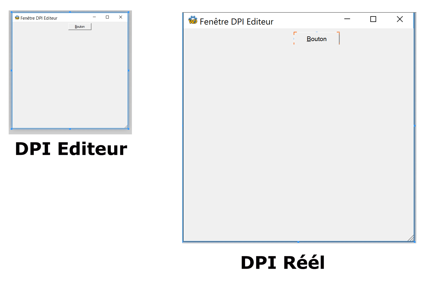 Lorsque vous positionnez des champs sur une fenêtre, les coordonnées sont référencées par rapport au DPI de l'éditeur (100 % de la taille). Donc un champ placé à 100 pixels bord d'une fenêtre faisant 200 pixels est positionné au centre de la fenêtre. Lors de l'exécution sur un... |