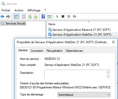 Par défaut le lancement de l'administrateur WDxx0ADMIN.EXE est automatique au démarrage du serveur web, grâce à un service Windows ajouté lors de l'installation du serveur d'application :