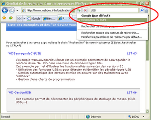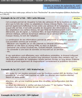 Depuis les ressources pratiques vous pouvez effectuer une recherche dans tous les exemples sur un sujet donné. Les ressources pratiques, c'est bien. Cette possibilité vous est également proposée en moteur de recherche pour votre navigateur IE 7 ou Firefox 2.0 comme le montre l'image ci-dessous. Je vous conseille vivement d'ajouter ce moteur de recherche dans votre navigateur,...