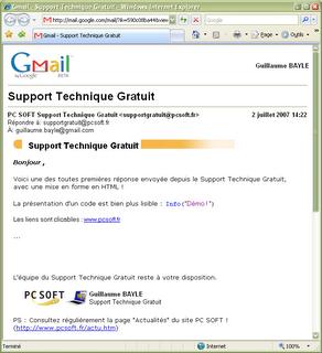 Je l'ai évoqué dans un précédent billet, les réponses émises par le Support Technique Gratuit vont avoir un contenu HTML, en plus du contenu texte actuel. Les avantages sont nombreux : le code pourra être mis en forme, les liens seront utilisables directement dans votre messagerie, les copies d'écrans seront incluses... Les premières réponses mises en forme vont débuter aujourd'hui même, pour se généraliser rapidement à toutes les demandes !