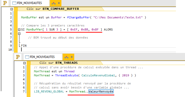 Deux bonnes illustrations en version 26 avec la nouvelle propriété ..ValeurRenvoyée sur type Thread, et la comparaison... |