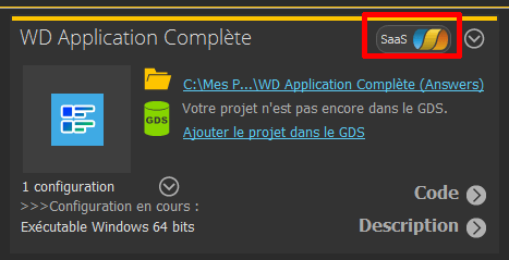 | Dans le tableau de bord des projets, le widget des informations propose un nouveau mode "SaaS" à partir de la version "Update 1" de WINDEV 2025 (301020).