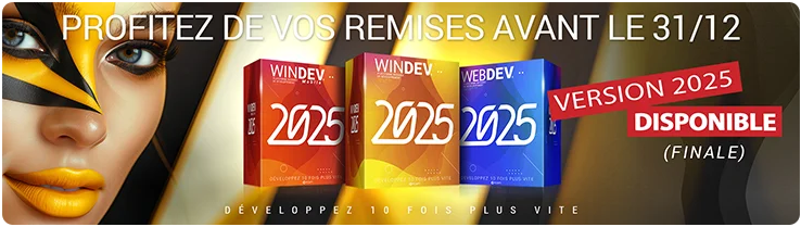 | La version 2025 de WINDEV, WEBDEV et WINDEV Mobile est disponible en version Finale.